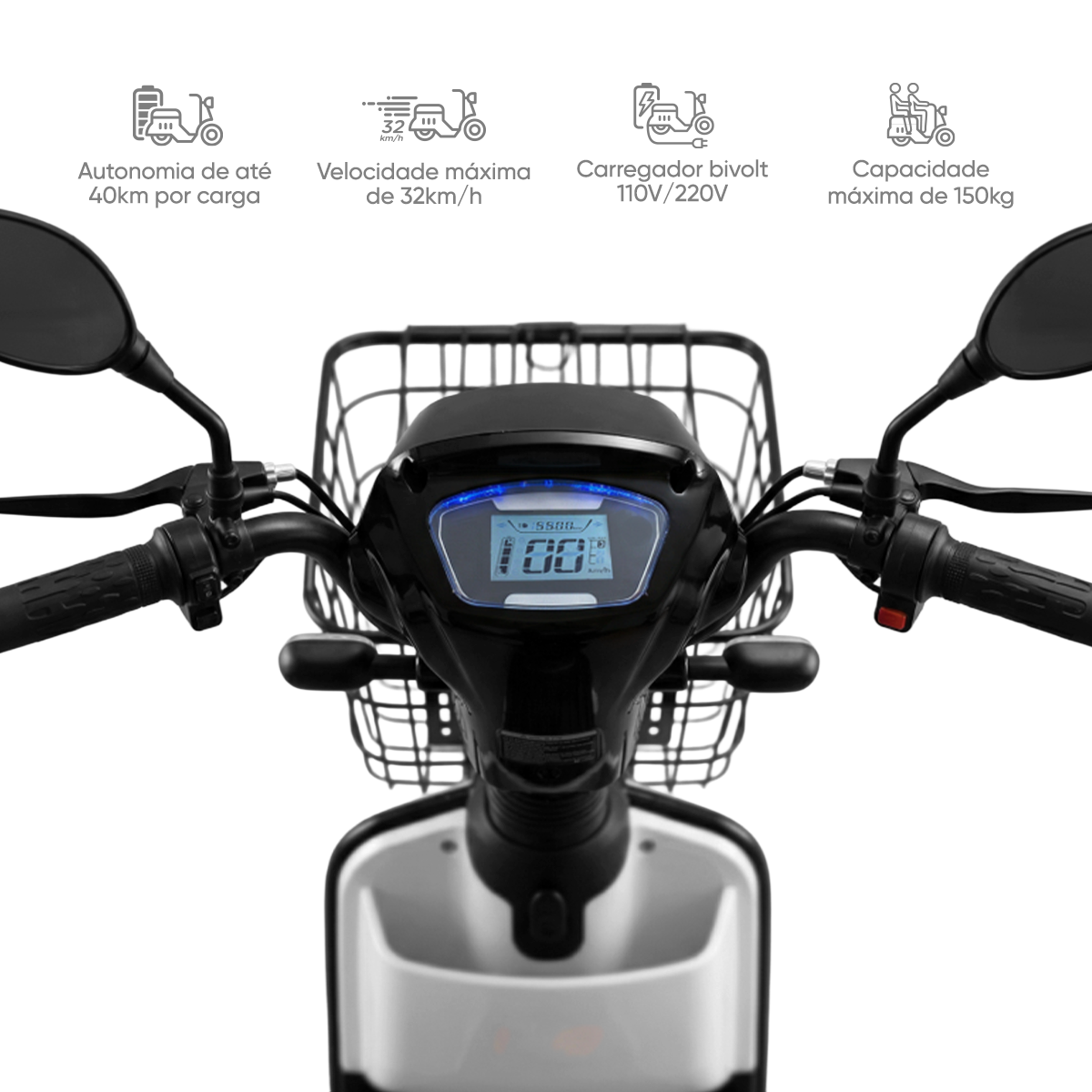 Bicicleta eletrica tcn basket 500w 40km max150kg branco moto scooter