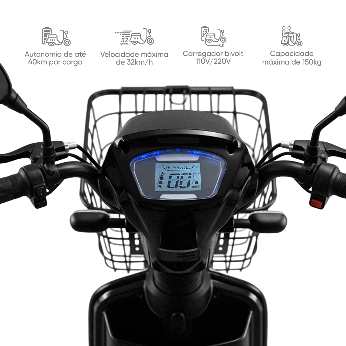 Bicicleta eletrica tcn basket 500w 40km max150kg preta moto scooter
