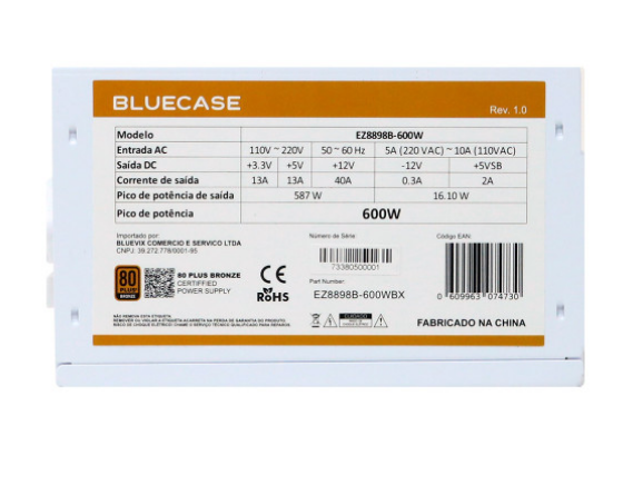 A Fonte de Alimentação EZ8898B-600 entrega 600W reais de potência com certificação 80 Plus Bronze, garantindo eficiência de até 82% para um desempenho otimizado e menor desperdício de energia. Com PFC ativo e bivolt automático (110V ~ 240V), oferece estabilidade e segurança para diferentes configurações.