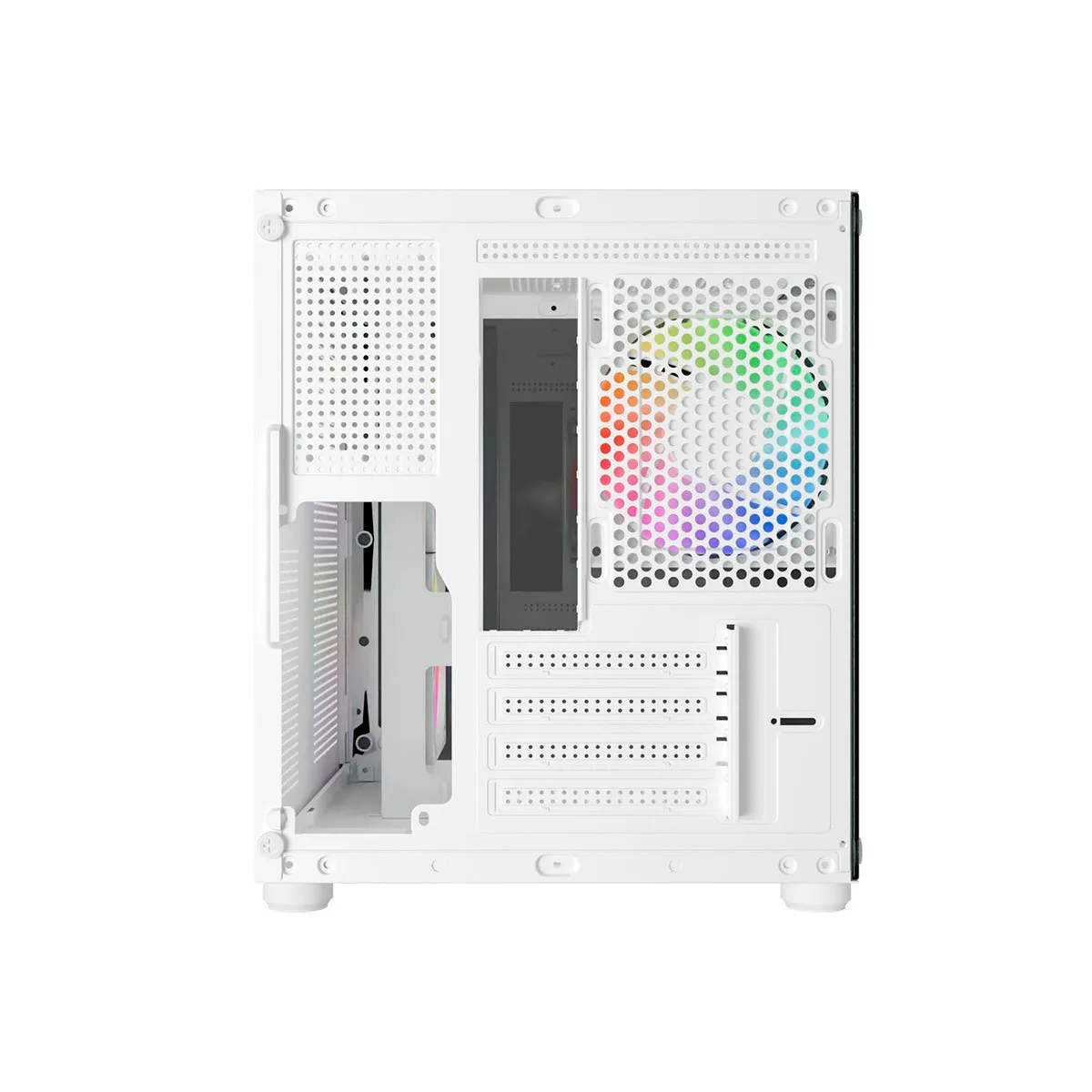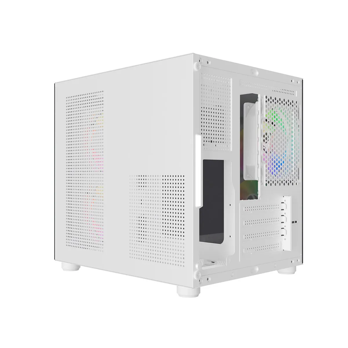 Com vidro temperado frontal e lateral, o modelo permite exibir seus componentes com clareza, mantendo um layout compacto e moderno. Compatível com placas-mãe mATX e mini-ITX, suporta placas de vídeo de até 310mm e coolers de CPU com até 155mm de altura.