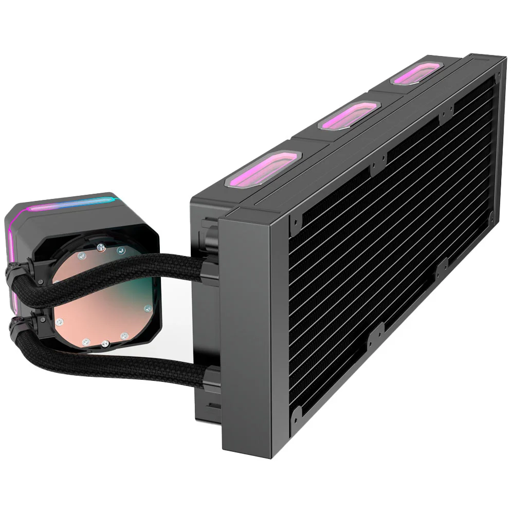 - Iluminação ARGB integrada no bloco da bomba e nos fans.