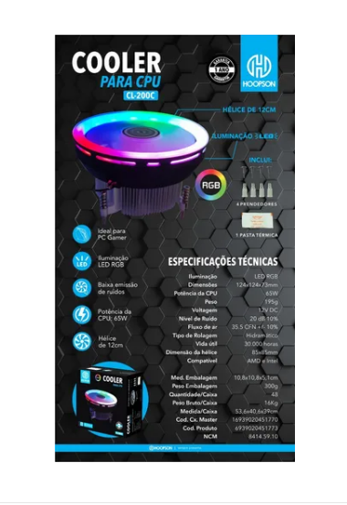 Cooler para processador so intel cl-200c rgb hoopson