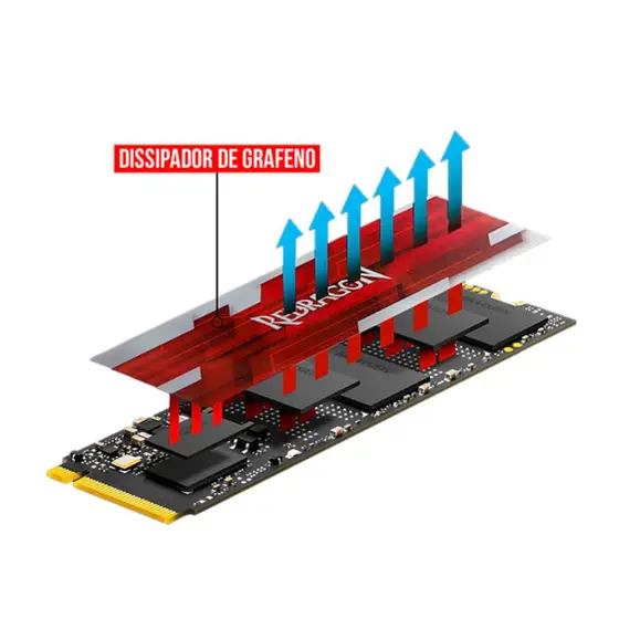 para garantir ainda mais performance e controle térmico, o ssd redragon blaze vem equipado com um dissipador de grafeno temático da redragon combinado com um baixo consumo de energia.