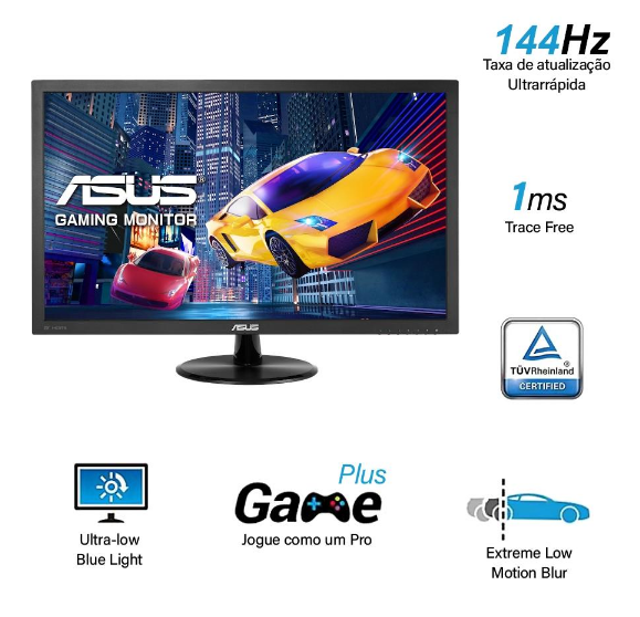 O monitor gamer ASUS VP249QGR foi desenvolvido para a vitó;ria na arena de jogos profissionais. Com seu painel IPS Full HD, taxa de atualizaç;ão de 144Hz com Adaptive-Sync (FreeSync) e MPRT de 1ms para um visual de jogo super suave, confunde a linha entre o que é; virtual e o que é; real para atrair você; a mundos de jogo verdadeiramente imersivos. Inclui ainda recursos centrados nos jogadores, como as tecnologias ASUS GamePlus, para levar a sua experiê;ncia de jogo a um ní;vel totalmente novo.