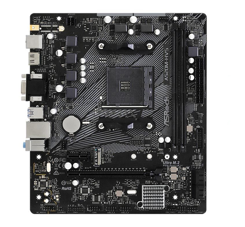 A A520M-HVS suporta processadores AMD AM4 Ryzen™ 3000, 4000 G-Series, 5000 e 5000 G-Series*, memórias de até DDR4 4733+ (OC), e duas conexões PCIe lhe proporcionando todas as funcionalidades para um setup imponente.