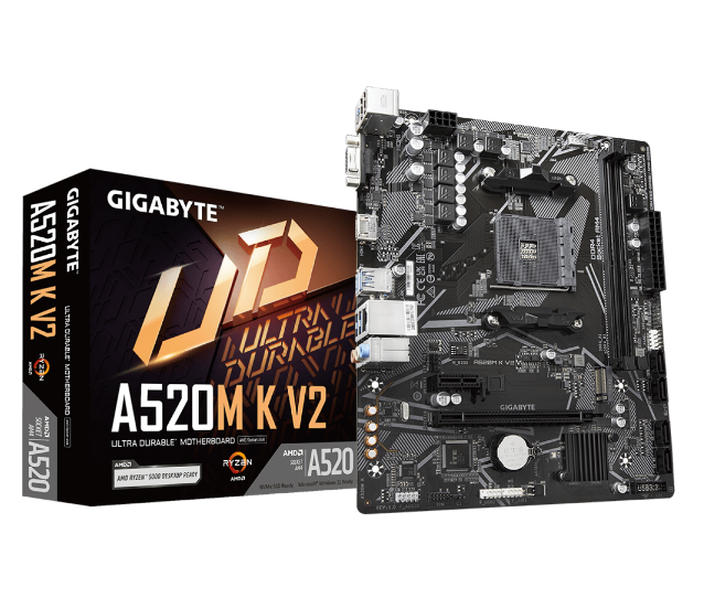 PLACA MÃE GIGABYTE A520M K V2, CHIPSET A520, AMD AM4, ATX, DDR4