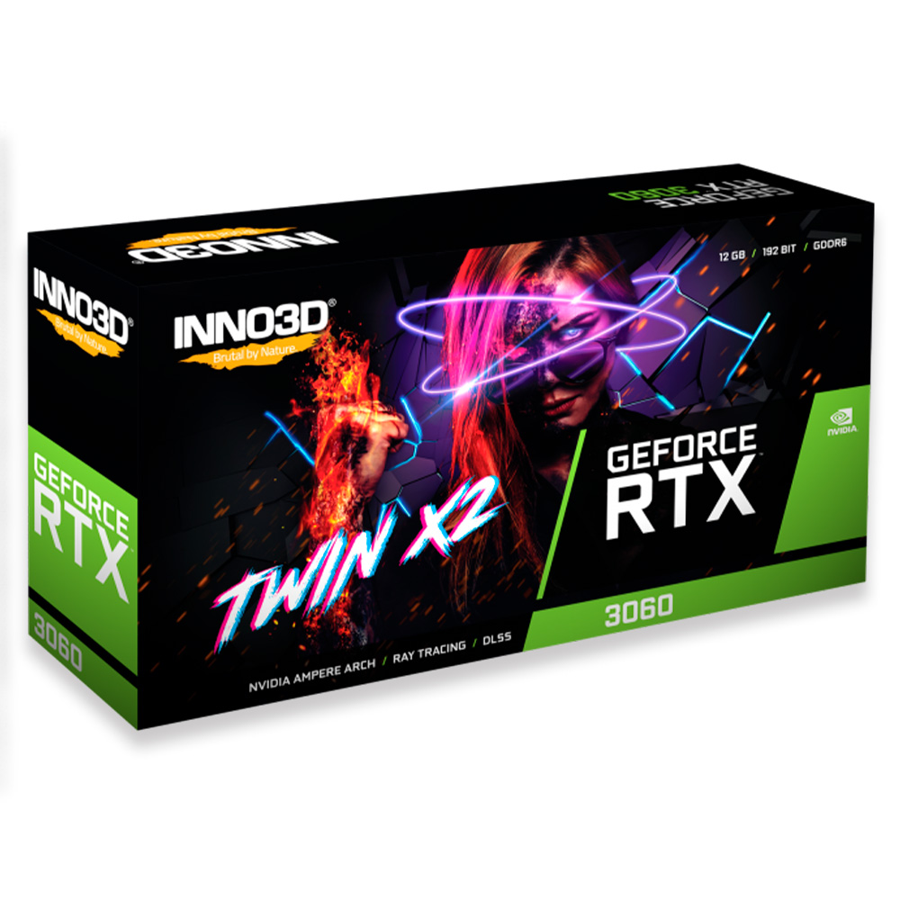A INNO3D GeForce RTX 3060 Twin X2 é refrigerada com dois fans de 9 cm para manter a temperatura em níveis ótimos durante as sessões de jogos dos usuários.