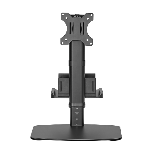 Ganhe liberdade e organização com o suporte livre para monitor e Mini PC, ideal para quem busca flexibilidade no posicionamento sem depender de fixação em mesa ou parede. Compatível com monitores de 17" a 27", ele suporta até 6kg para monitores e 2kg para Mini PCs, sendo uma excelente solução para setups compactos e multifuncionais. Com altura ajustável de 16cm a 41cm, inclinação vertical de +60° a -20° e giro de ±180°, oferece conforto visual e ergonomia, além de otimizar o uso do espaço. A estrutura conta com acabamento em pintura eletrostática para maior durabilidade e visual moderno.