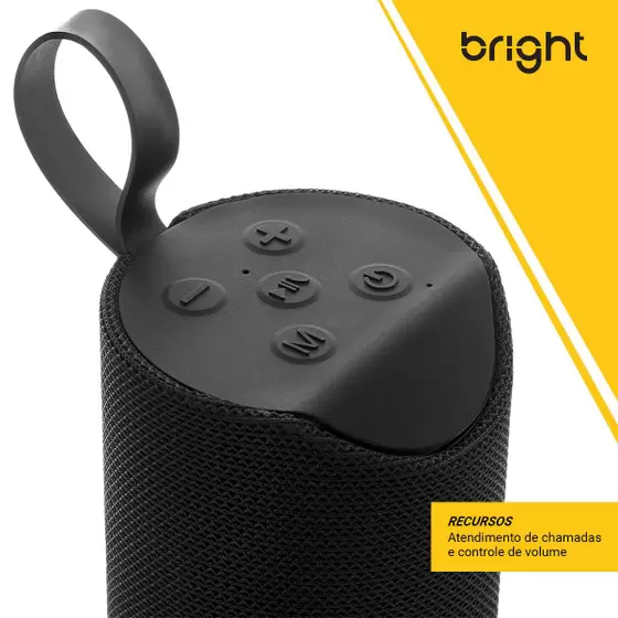 A Caixa de Som Bluetooth Portátil Bright é ideal para você levar onde quiser e aproveitar ao máximo suas funções, e seu tamanho compacto facilita na hora de transportar.