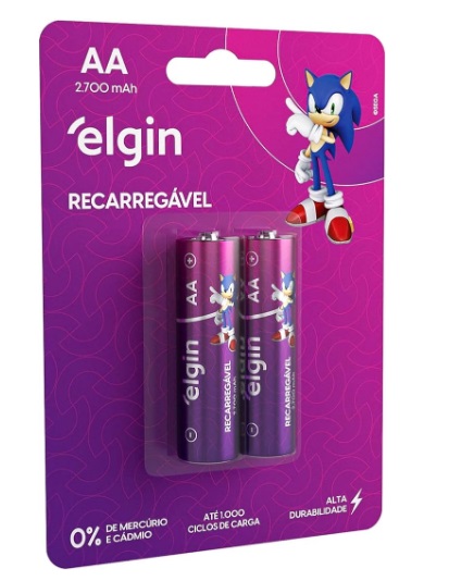 Pilha recarregavel elgin 2 comum aa 2700mah